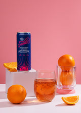 PFAS-free filtered carbonated water, organic citra hops, organic hibiscus, organic orange peel.